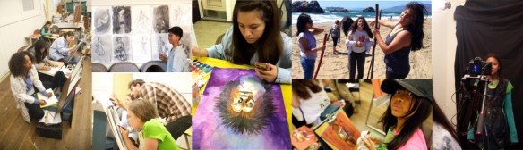 Schedule:  Week 1, June 19-23, ages 9-19, Week 2, June 26-30, ages 6-19, Prospective Week 3, July 17-21. All days are from 9 a.m. to 5 p.m. at 4301 Geary Blvd, San Francisco CA 94118.  Entrance at 7th Ave, 2nd floor. rm. 5. Artists & volunteers provide a high adult-to-youth ratio. Click here for more details.